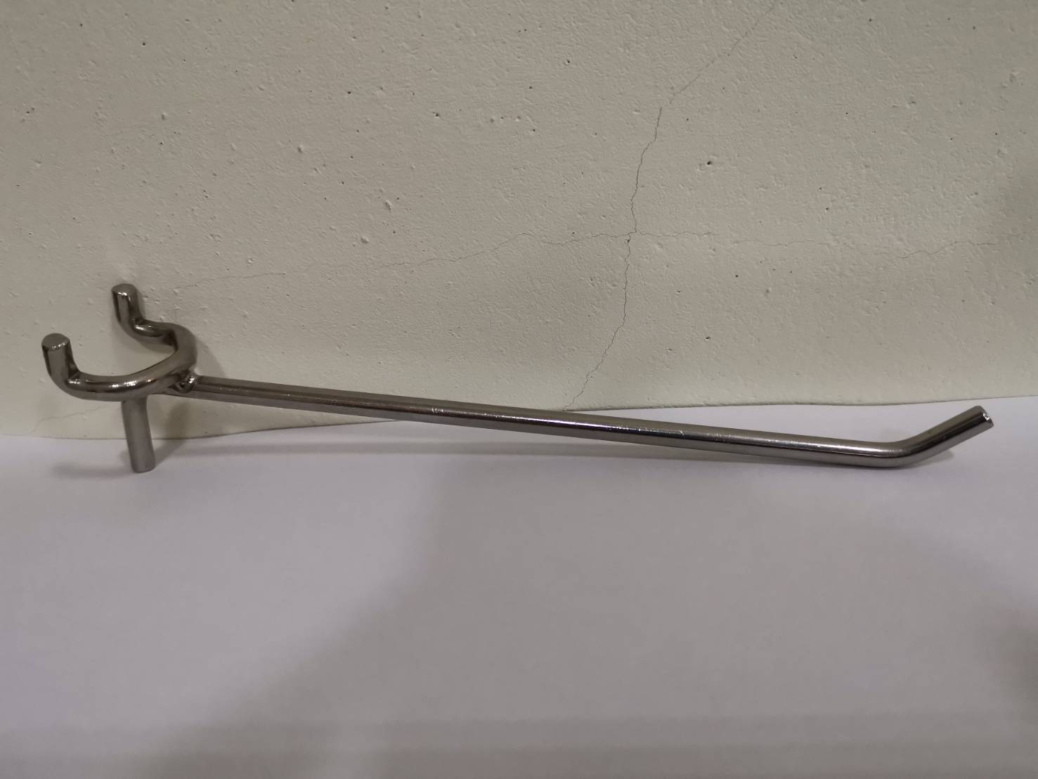 說明:不銹鋼掛勾,間距為47mm,使用於圓孔之洞洞板,間距、外型、長度皆可訂製,可掛飾品、襪子、皮件、小配件等較輕型的物品,另可訂專屬使用的洞洞板,可客製化。 各類屬賣場鋁製展示架及展示桌設計與製造、各類金屬加工、 金屬沖壓配件、冲床加工與製造、五金零件製造、 零件冲壓加工